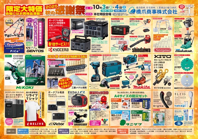 (株)川本第一製作所、京セラインダストリアルツールズ(株)、工藤メタル湘南、工機ホールディングスジャパン(株)、(株)下谷金属、(株)谷沢製作所、トンボ工業(株)、トラスコ中山(株)、(株)ピカコーポレーション、(株)ヒシヒラ、(株)マキタ、丸高興業(株)、やまびこジャパン(株)