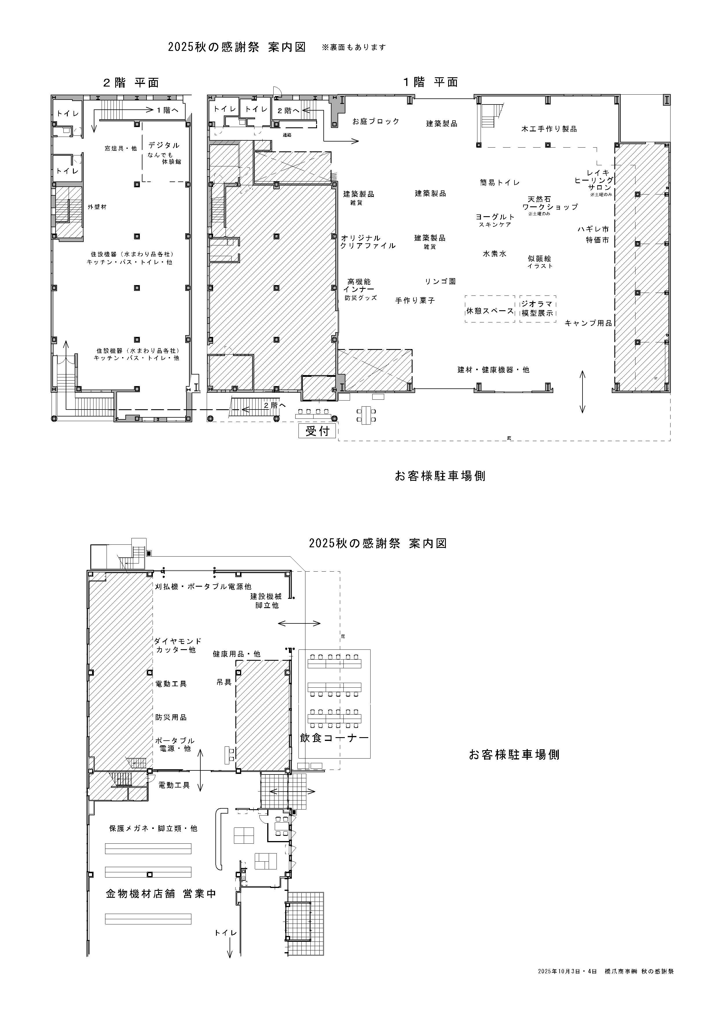 感謝祭の会場配置図を以下に表示します。当日は受付にて裏表コピーした配置図をお渡し致します。